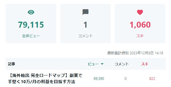 現在は海外輸出をスタートし、下記の実績を2か月でたたき出しています。