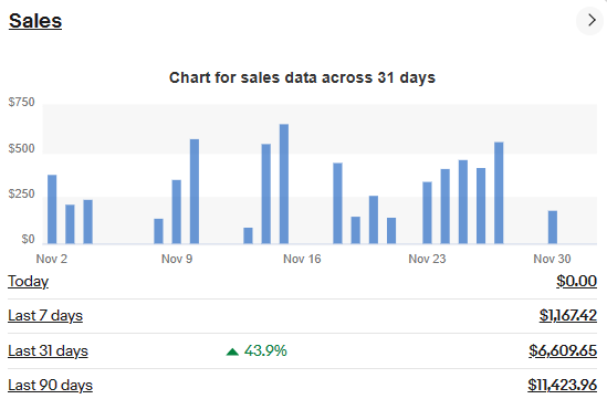 直近の収益(2023年11月末)利益$1,350、売上$6,803(利益率20%)